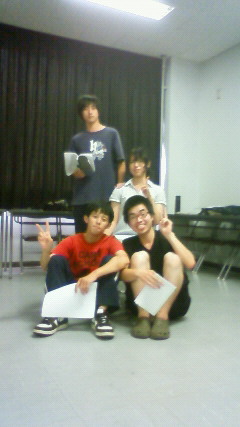 写真は稽古風景。この4人の関係や如何に・・・!?